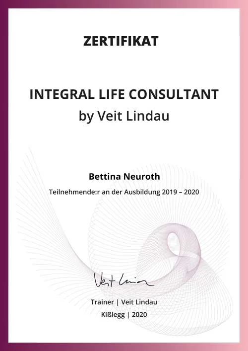 Mit der Hilfe von Bettina konnte ich einen Familienstreit, der schon mehrere Jahre angedauert hat, befrieden. Durch ihrer Fähigkeit auch bei komplexen Situationen ein tiefes Verständnis von unterschiedlichen Perspektiven zu entwickeln hat sie mich inspiriert einen Weg zu finden, der zur Auflösung des Konflikts geführt hat. Dabei unterstützt sie mit hoher sozialer Kompetenz, Lebensfreude und liebevollem Mitgefühl die einzelnen Schritte von der Vision bis zur konkreten Umsetzung.